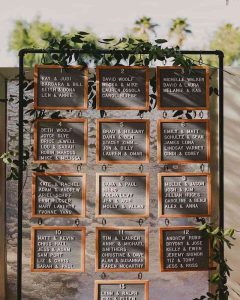 Phong cách industrial cũng là mẫu thiết kế độc lạ rất đáng để cô dâu chú rể tham khảo. Nhất là khi đôi bạn định hình phong cách tổ chức tiệc cưới mang hơi hướng hiện đại, thì phong cách industrial là vô cùng phù hợp. Để thiết kế sơ đồ vị trí đúng chuẩn phong cách industrial, bạn chỉ cần sử dụng chiếc bảng lưới đơn giản. Sau đó, bạn gắn những tấm hồ sơ chứa thông tin gồm tên và vị trí chỗ ngồi của khách mời. Một kiểu trang trí nhanh gọn, tiện lợi, nhưng tạo hiệu ứng tốt vô cùng.